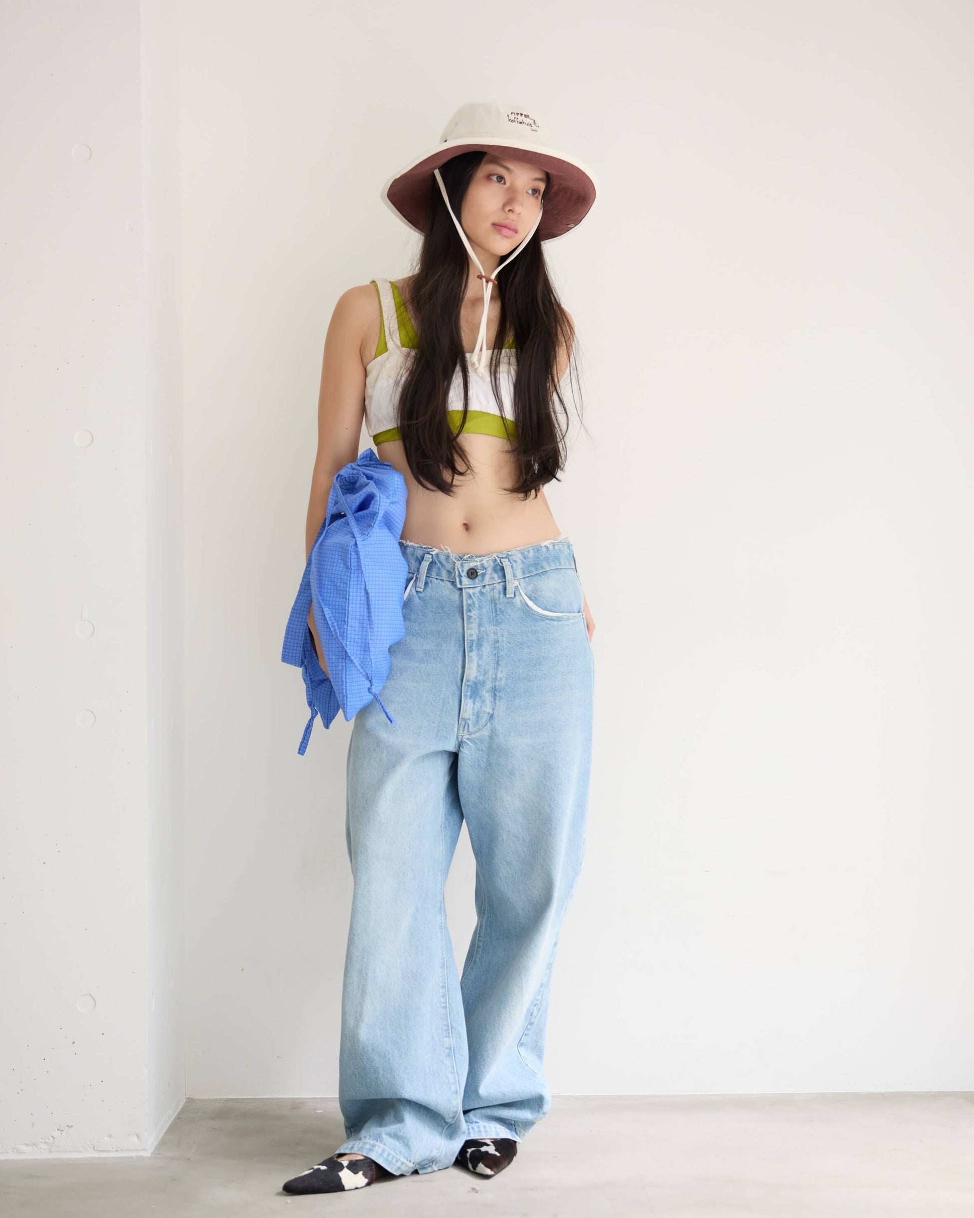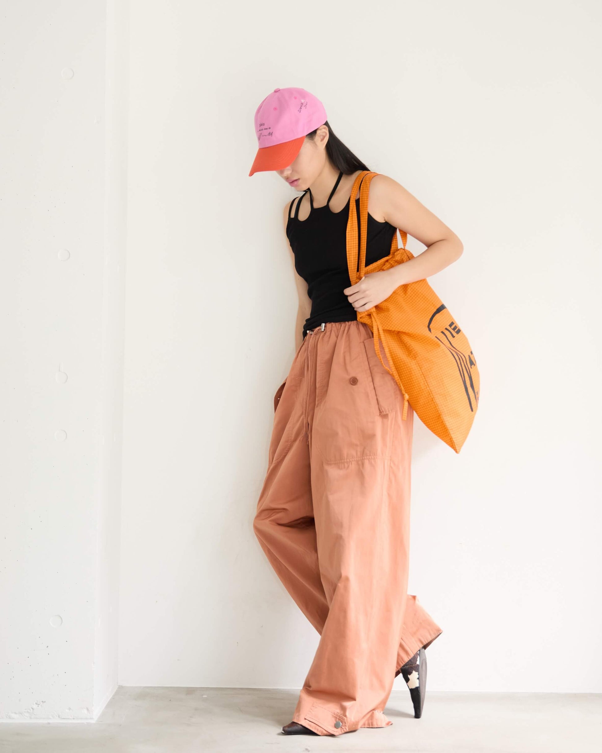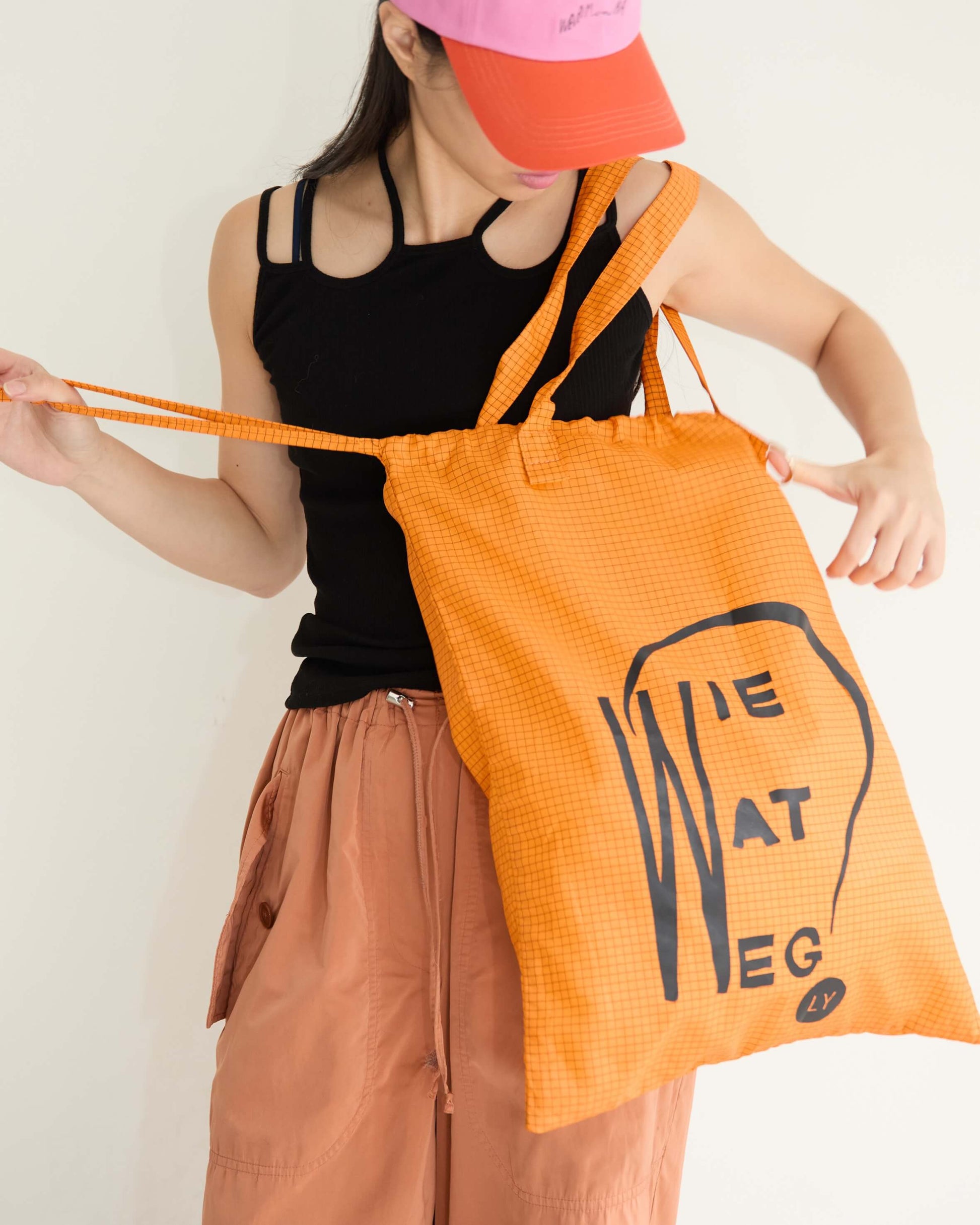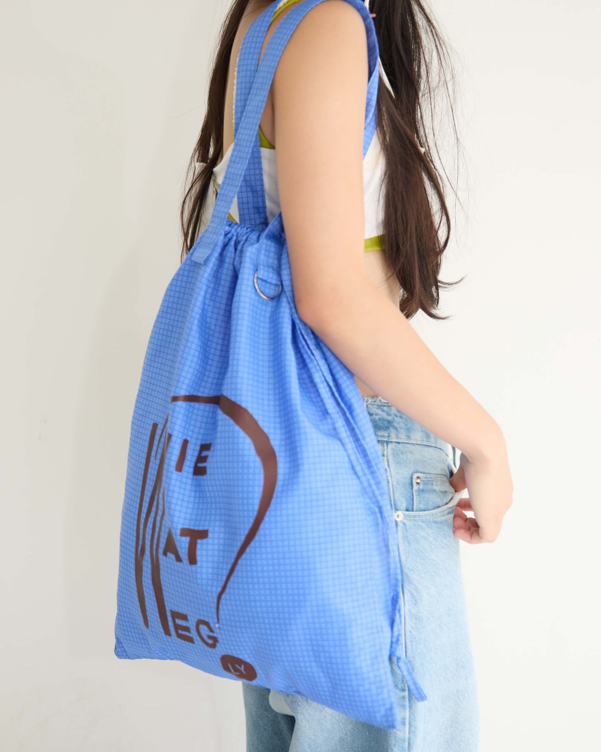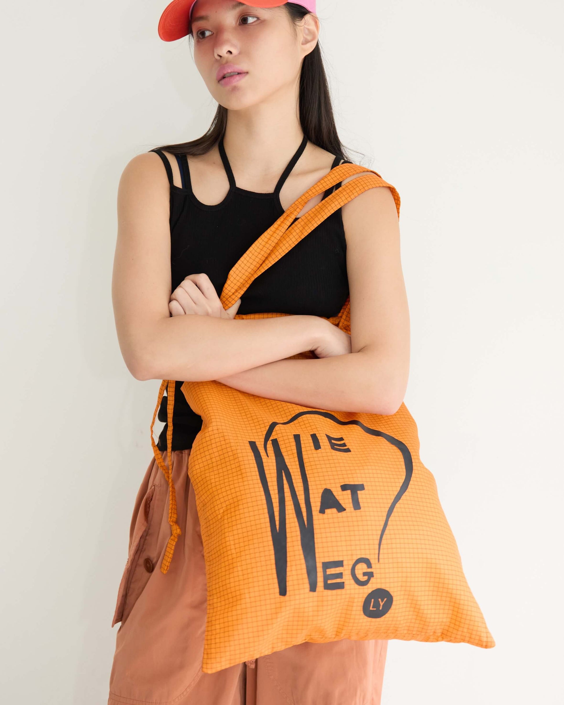 旅先でも日常でも欠かせないサブバッグは、A3サイズまですっぽり入る大きめのシルエットで、本や洋服をたくさん買ってもしっかり収まるサイズ感に。オランダで見つけた古い本の表紙をもじったロゴプリント。