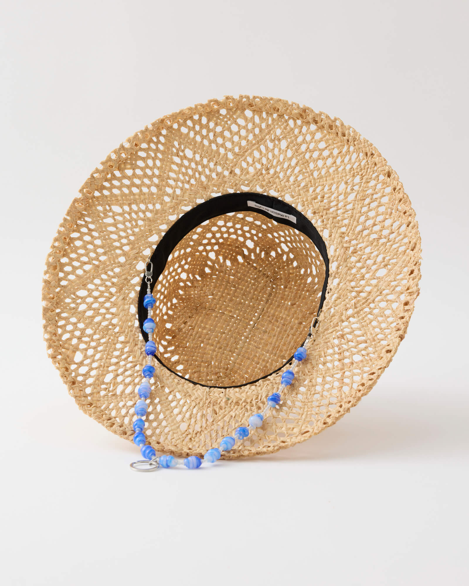 It attaches to your hat, with a central double ring that functions as a key holder or glasses holder.