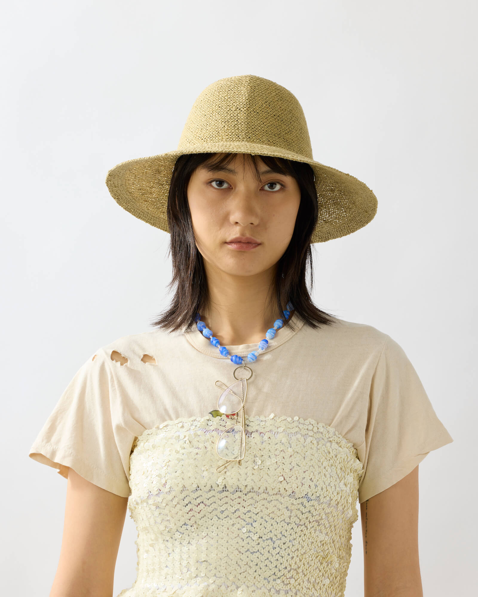通常ネックレスよりも強度を高めて製作していますが、強く引っ張ったり引っ掛けたりすると破損の原因となる恐れもあるためご注意ください。一部ガラス製のため強い衝撃を与えないでください。