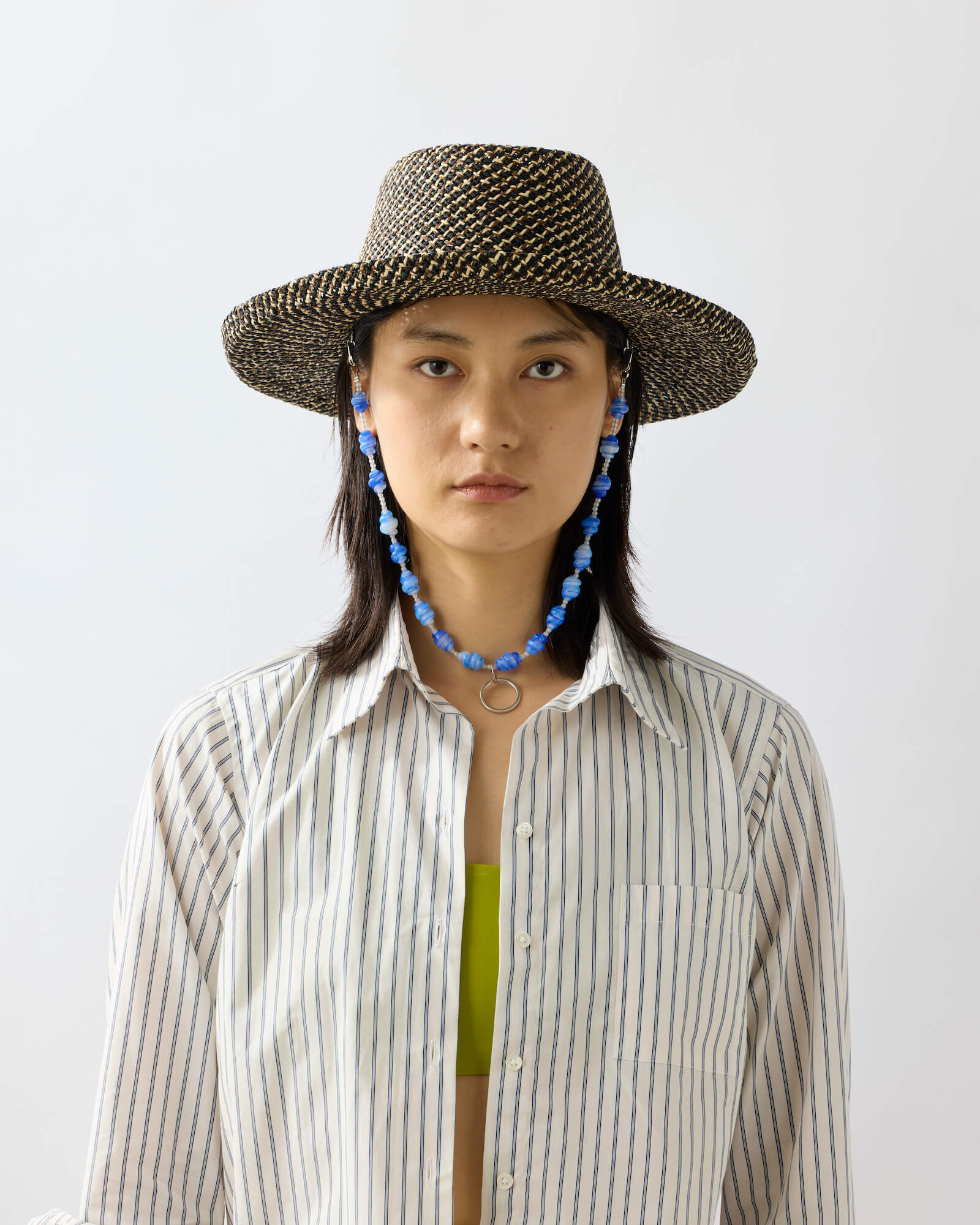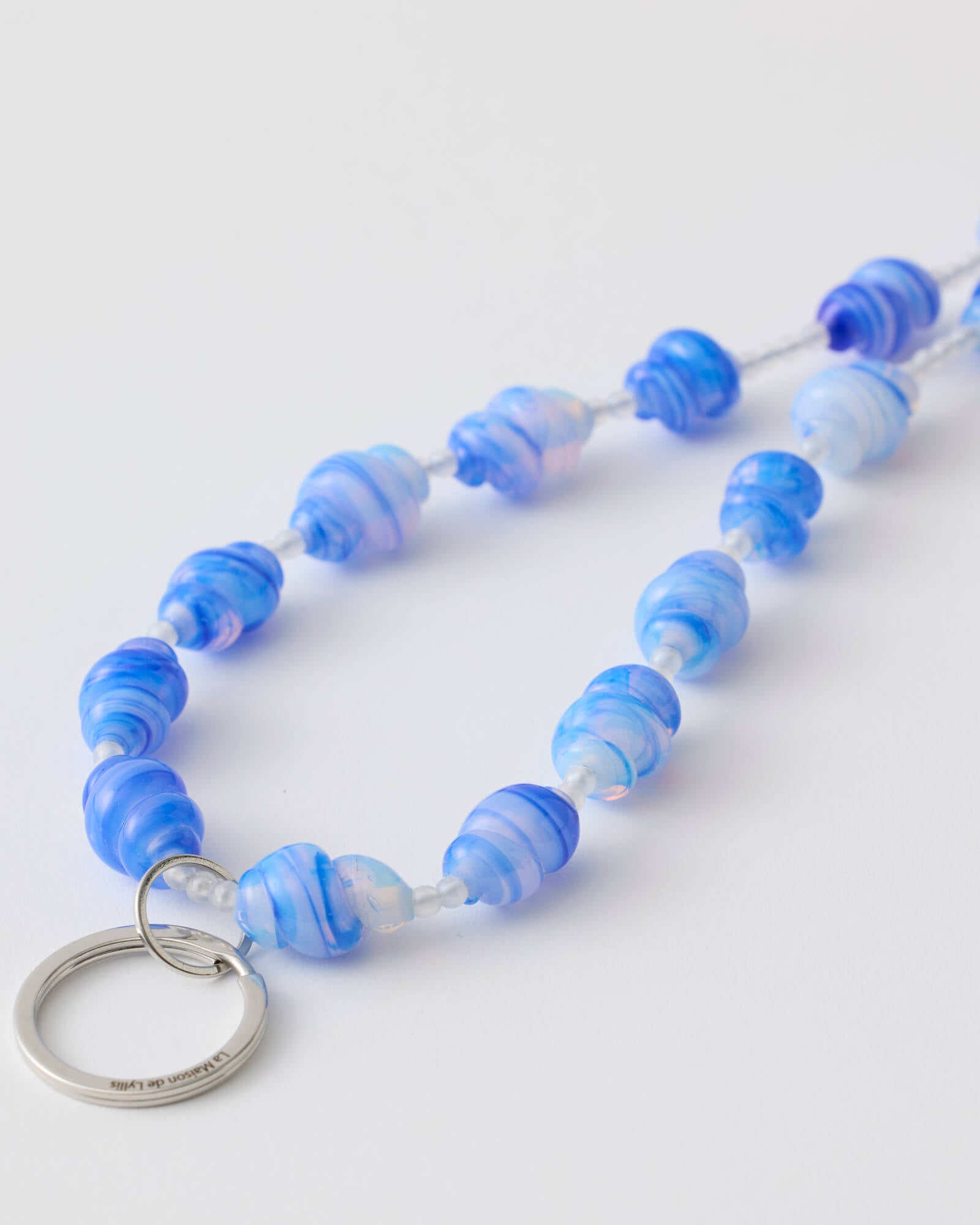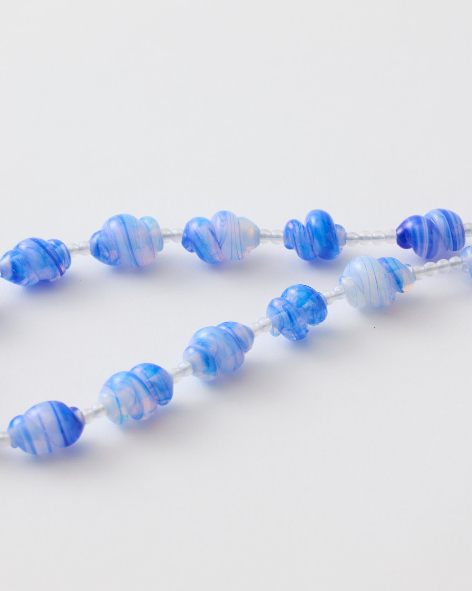BLUE CLOUD features Japanese vintage stock hand-wound glass beads. Each bead is handcrafted using a burner, giving it a rich color, warm curves, and a charmingly organic finish.