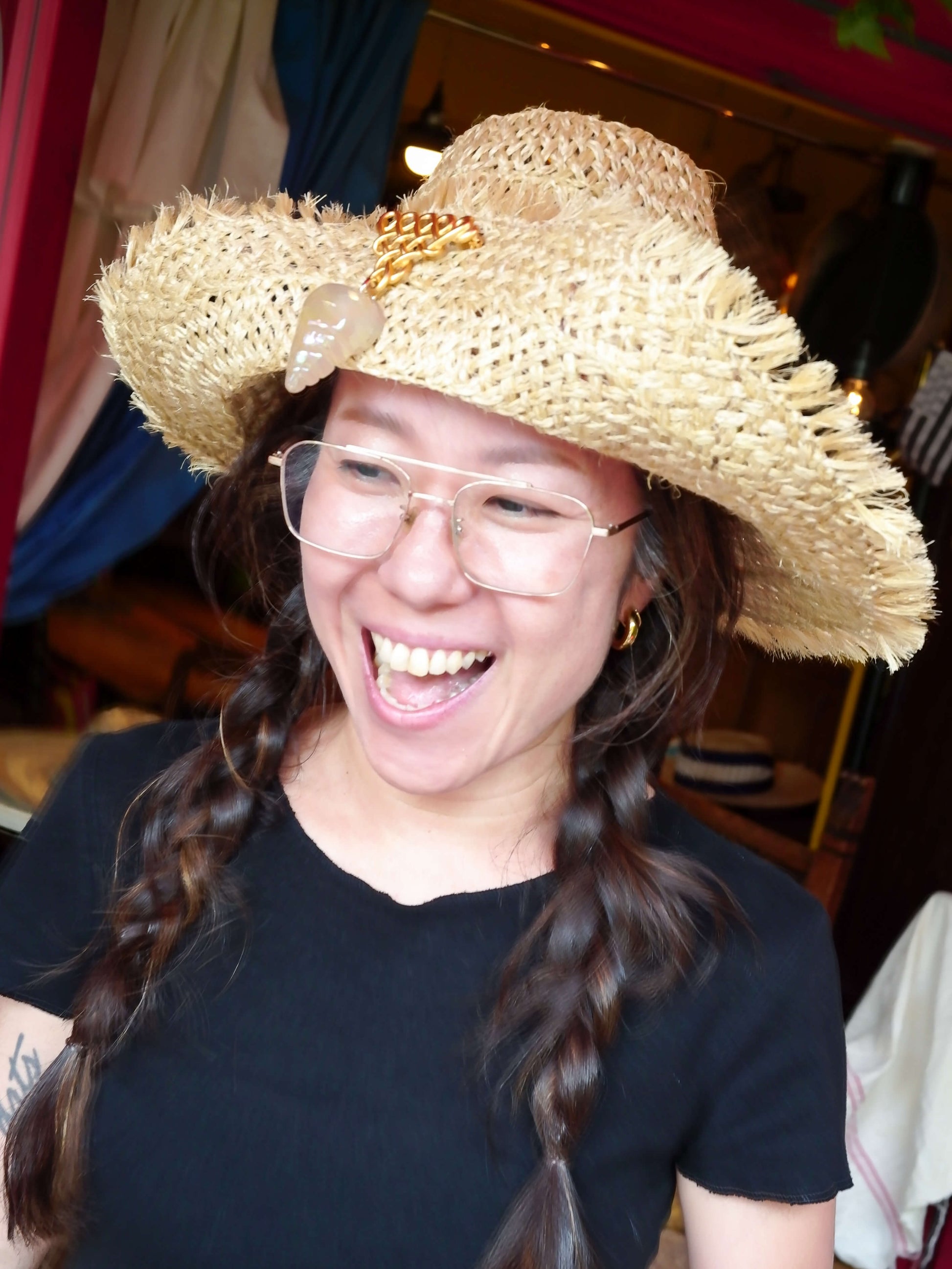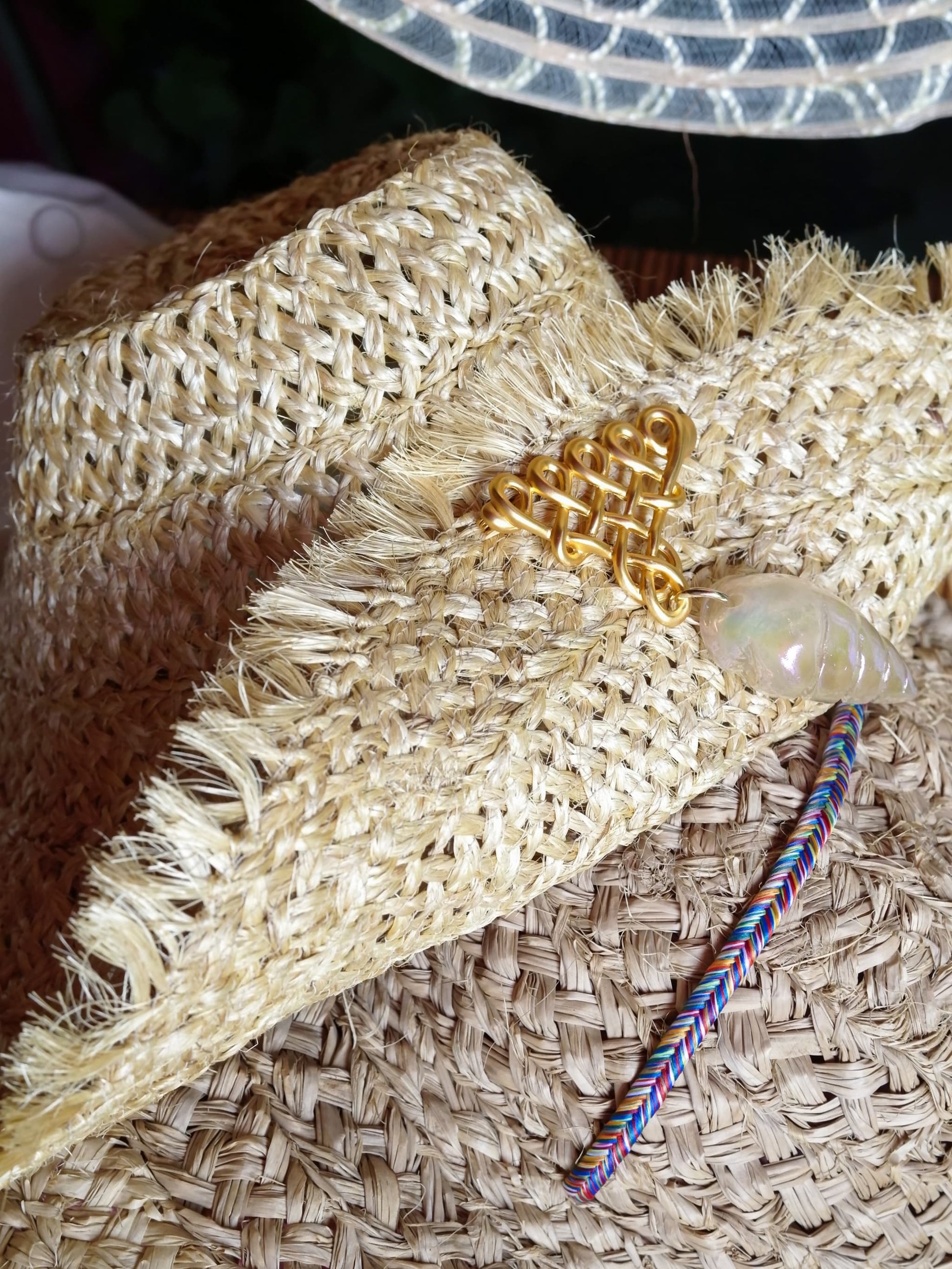 A statement brooch featuring a large resin shell motif as the focal point, combined with carefully selected deadstock parts. The components used were primarily produced in Osaka for export during the era when costume jewelry was at its peak. These now-unavailable, rare parts are reimagined into a nostalgic yet charming design.