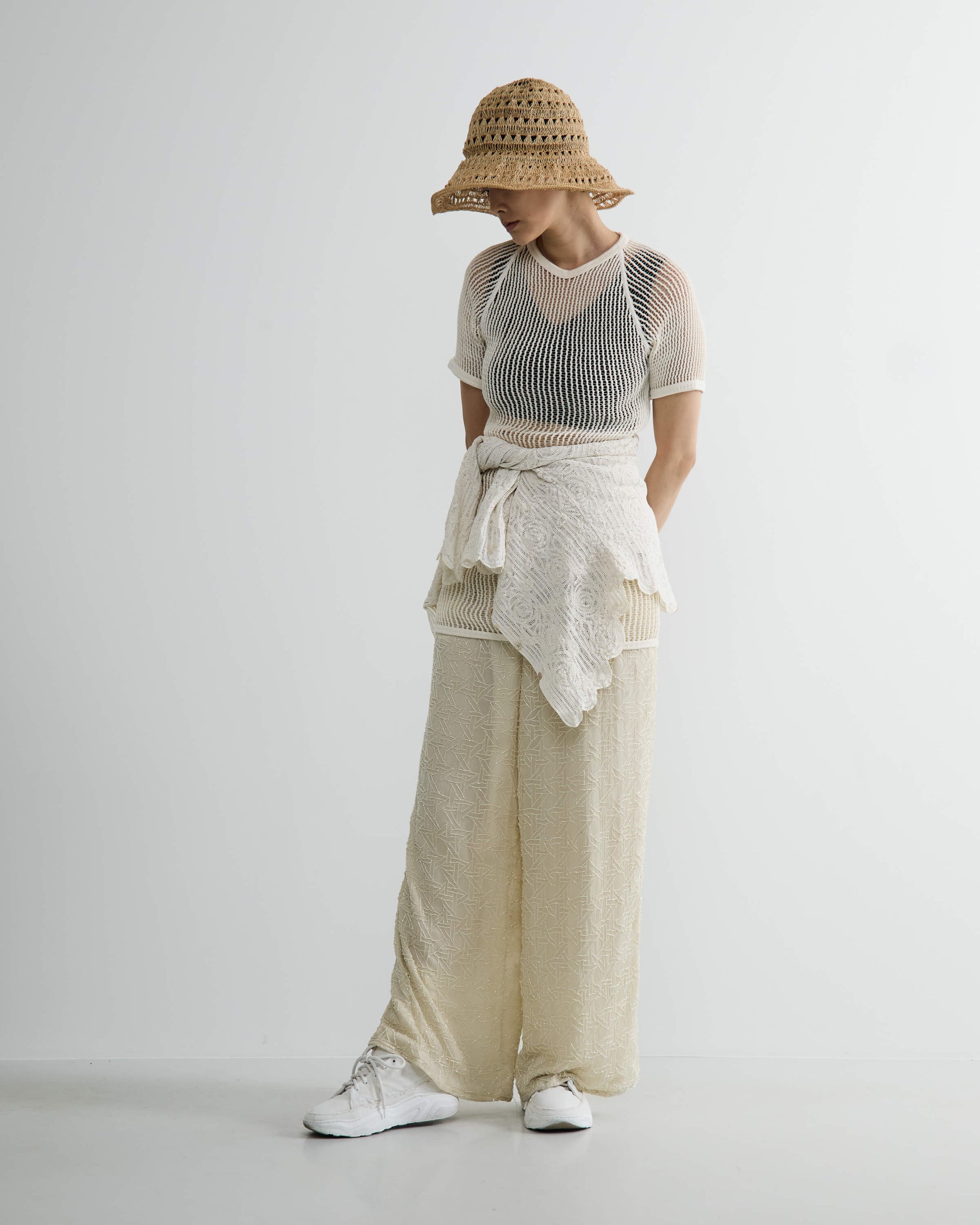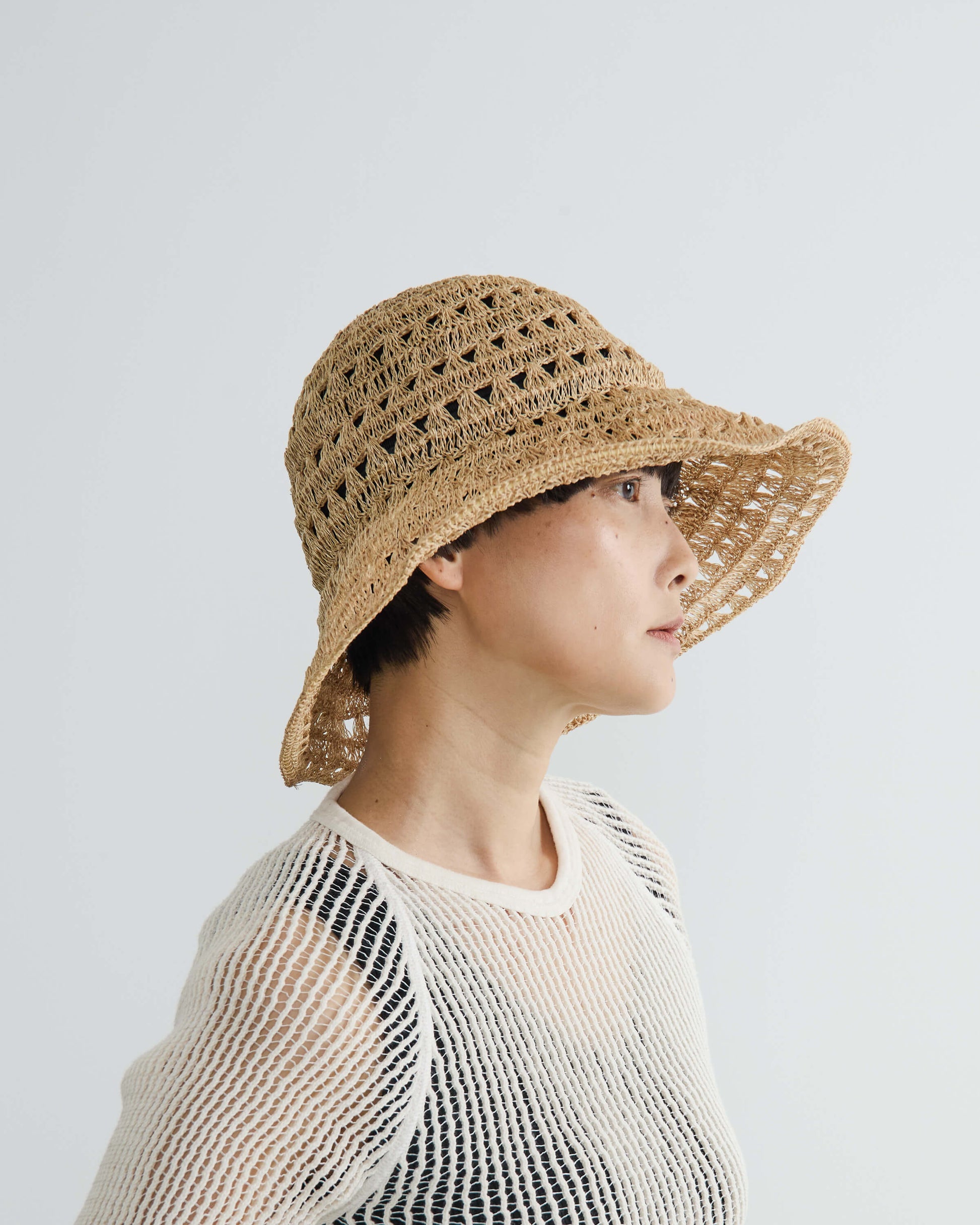 繊細な編み地から落ちる木漏れ日のような光、通り抜ける涼しい風を感じられるサマーハット。