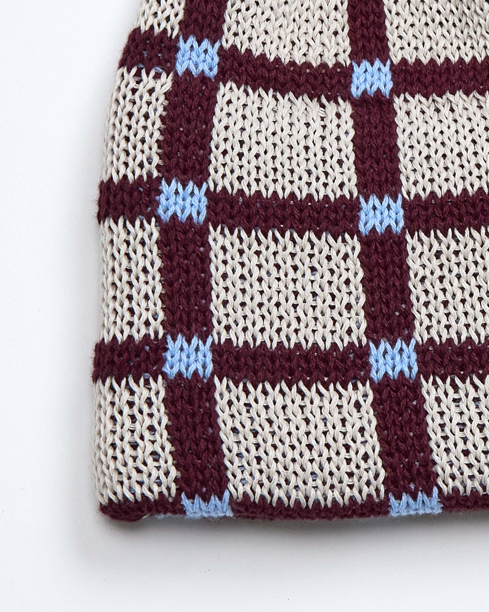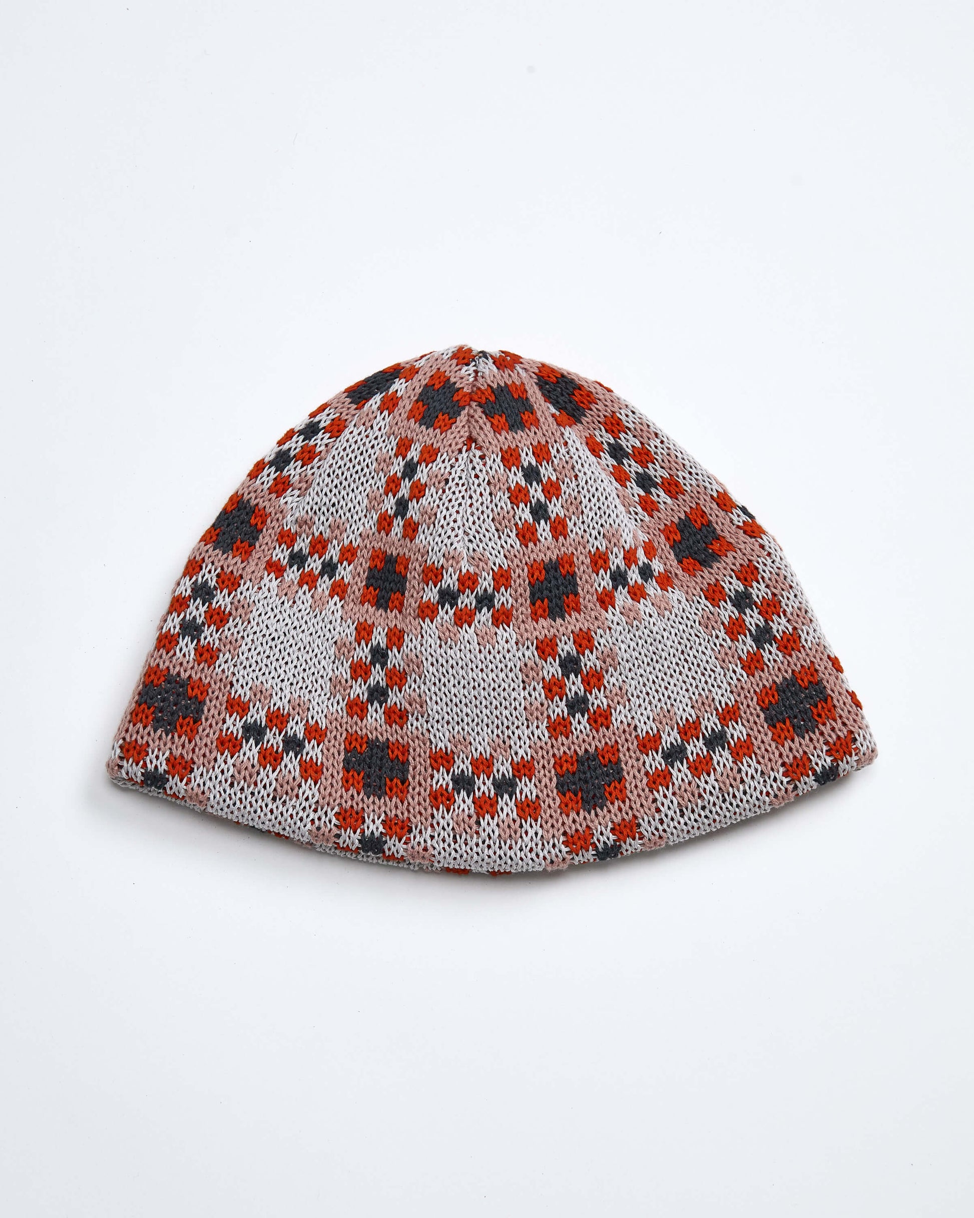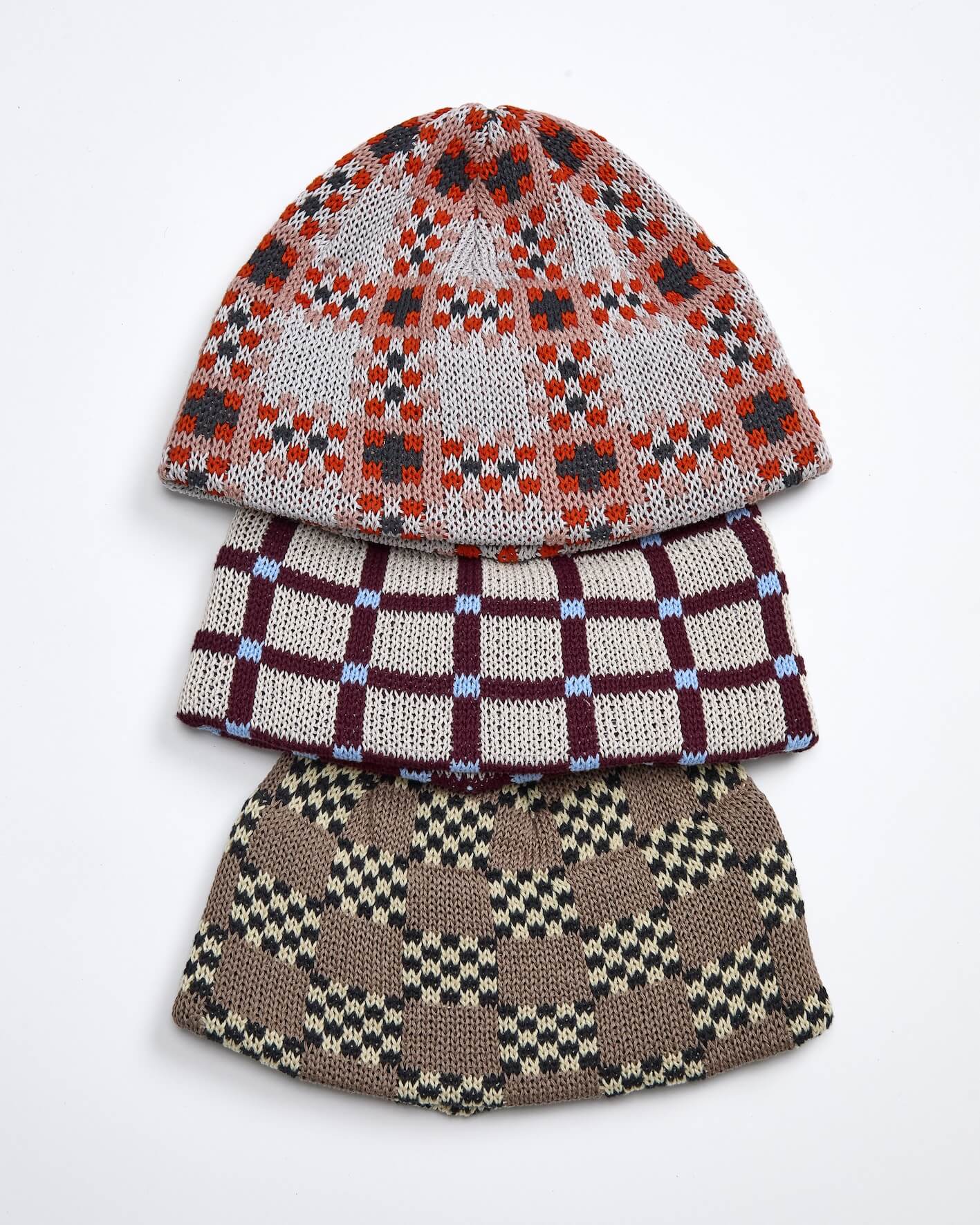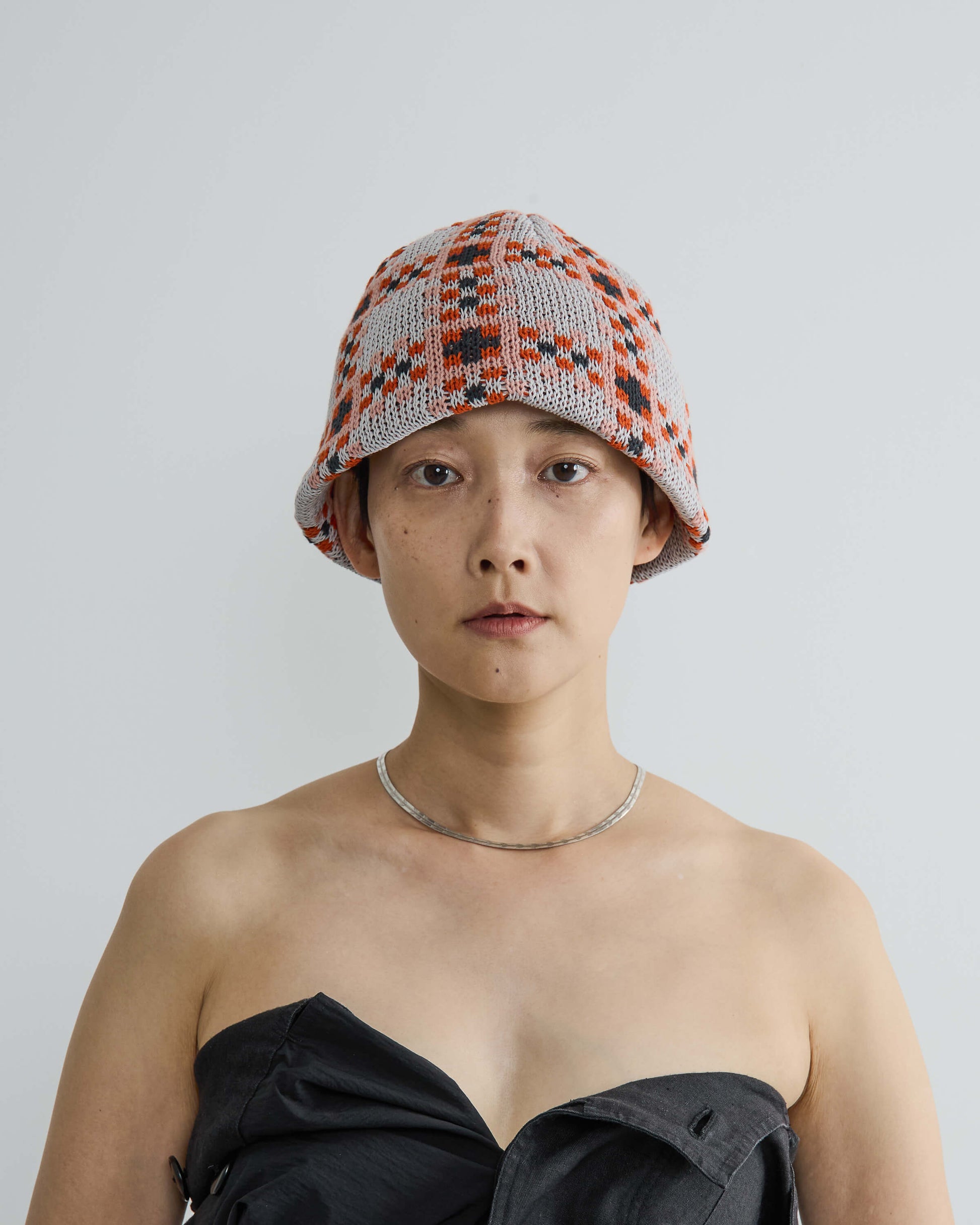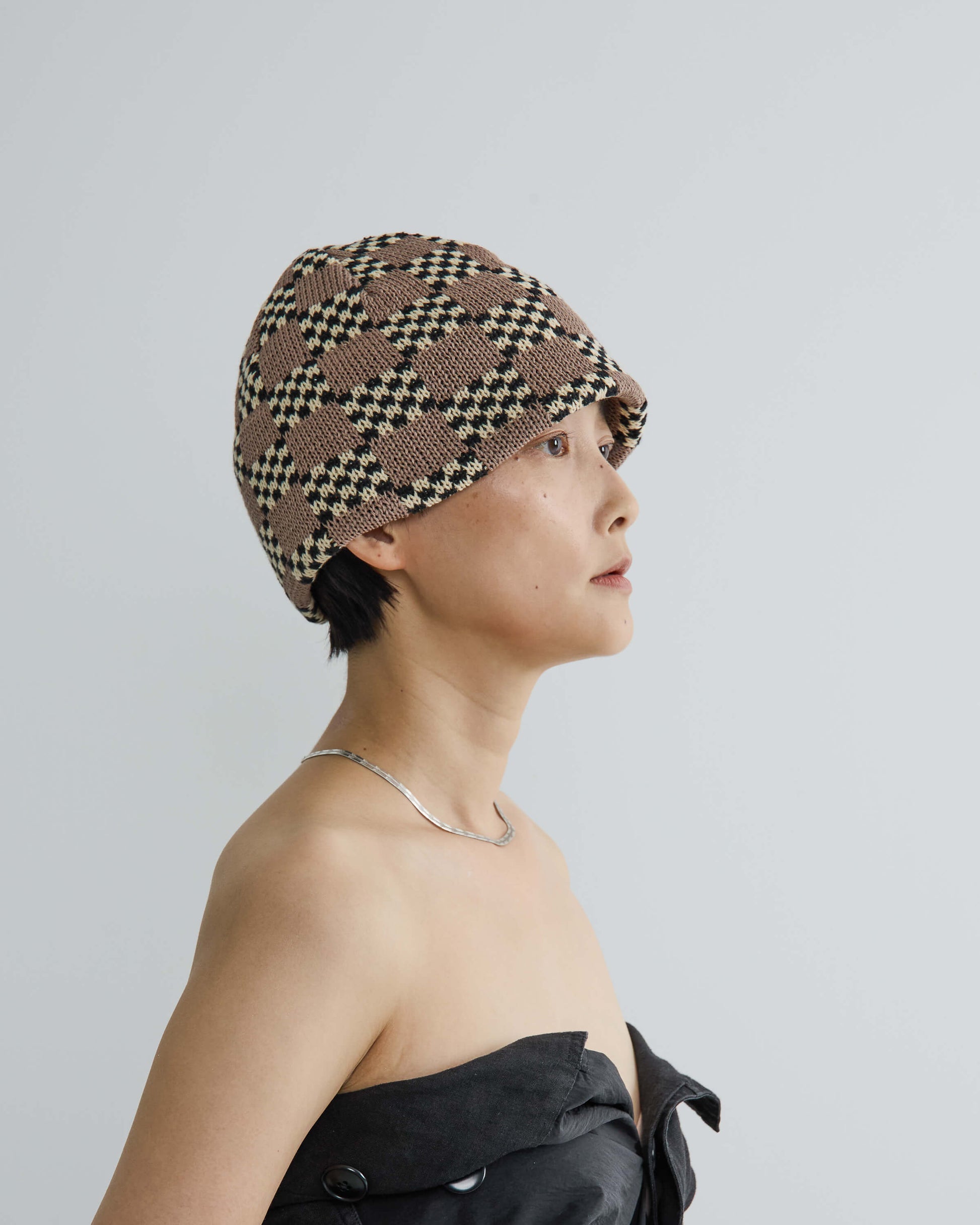 シルエットが特徴のニットビーニー。顔がすっぽりと埋まるような締め付けのないフォルムが印象的です。