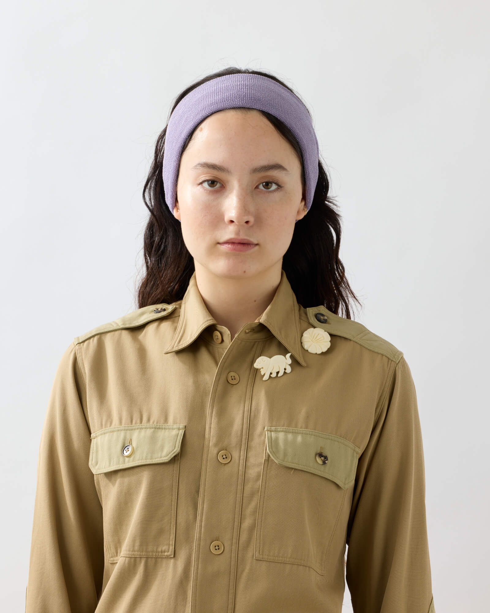 JACARANDAとSALSA,CACAOはミックスカラーで立体感のある仕上がりに。パイル状の編み地のため適度な厚みがあり顔まわりをカバー。しっかりとヘアスタイルを纏め、ダウンヘアーやショートヘアーでもずれることなく着用いただけます。