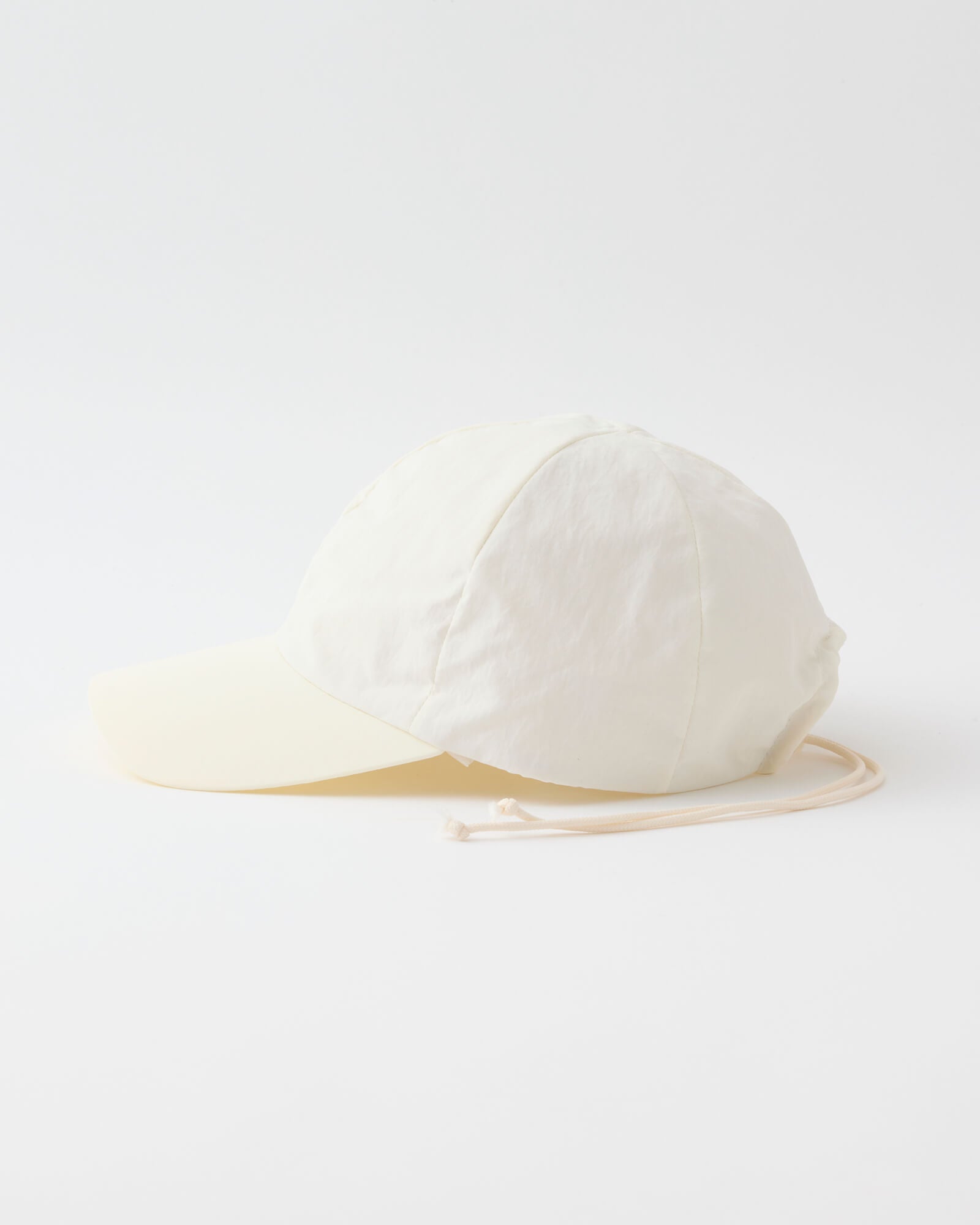 Crafted from water-repellent nylon with a dry texture, the cap uses water-friendly cords and contains no metal parts—making it suitable for a variety of settings, from daily wear to pairing with swimwear at the pool or seaside.