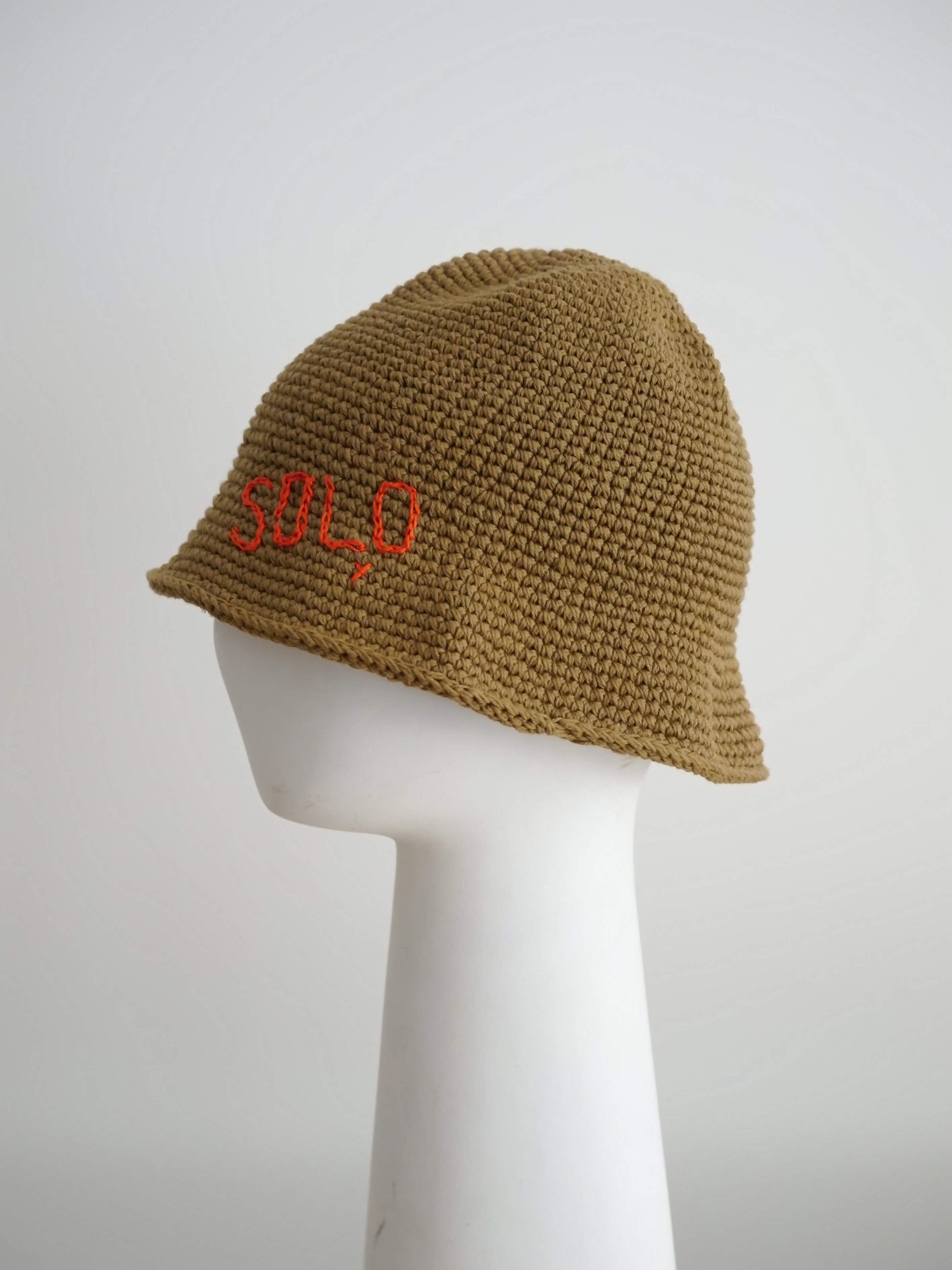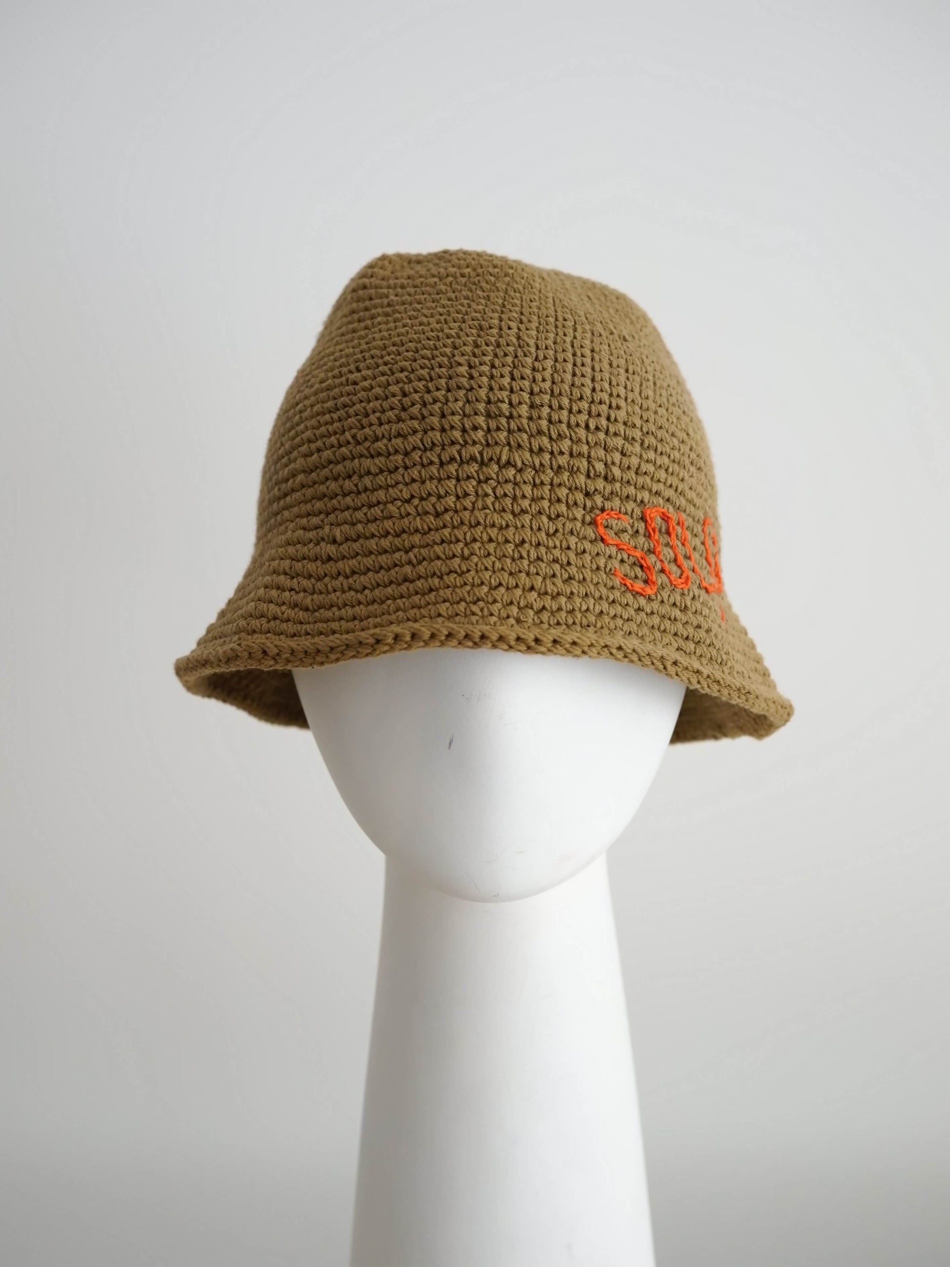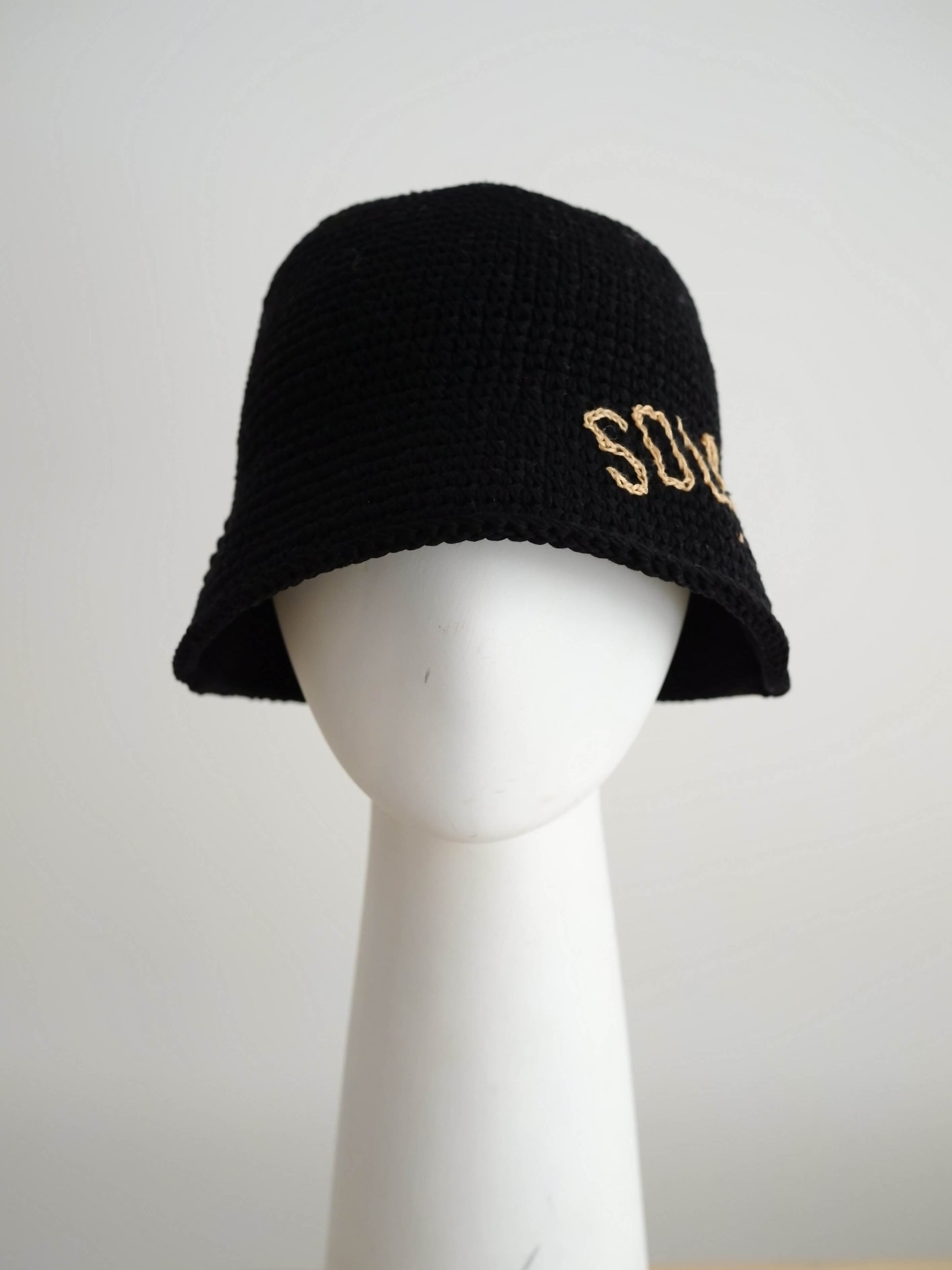 A hand-crocheted bucket hat crafted from cotton yarn with a texture reminiscent of traditional kite string. Its compact silhouette offers a snug yet relaxed fit, and the hat is designed without an inner size tape, allowing for a comfortable one-size fit.