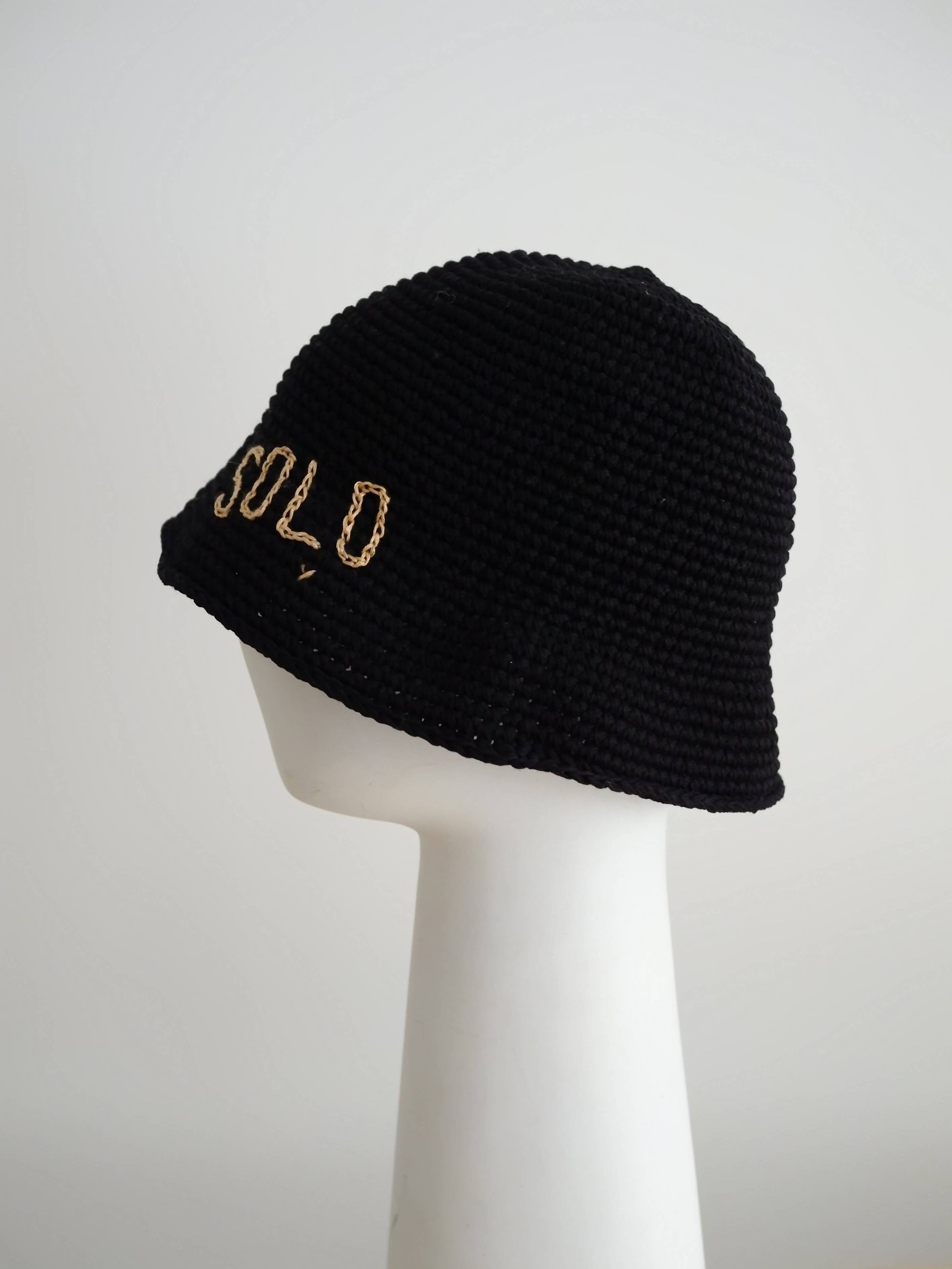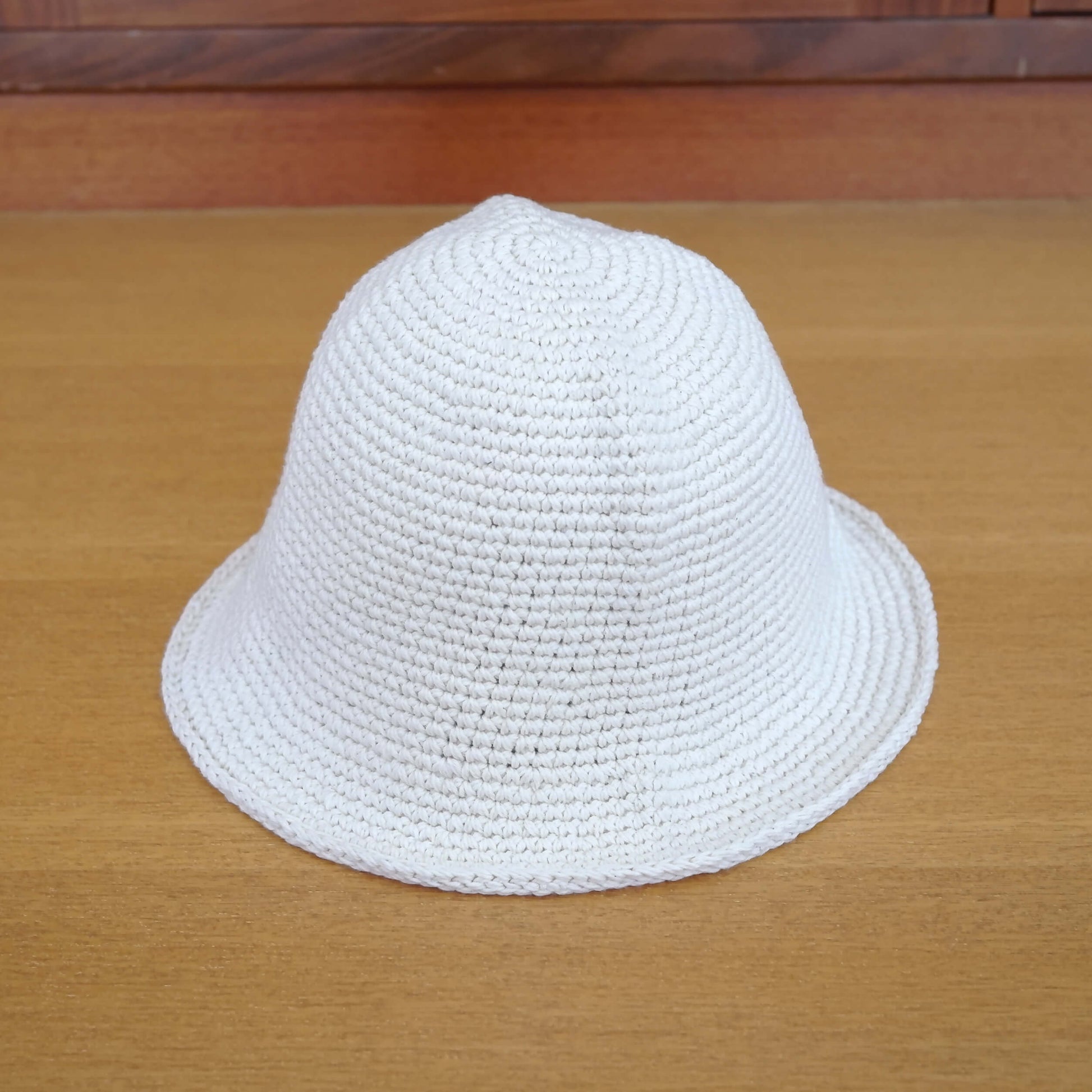 凧糸のようなコットン糸を丁寧に細編みした、コンパクトシルエットに手編みバケットハット。