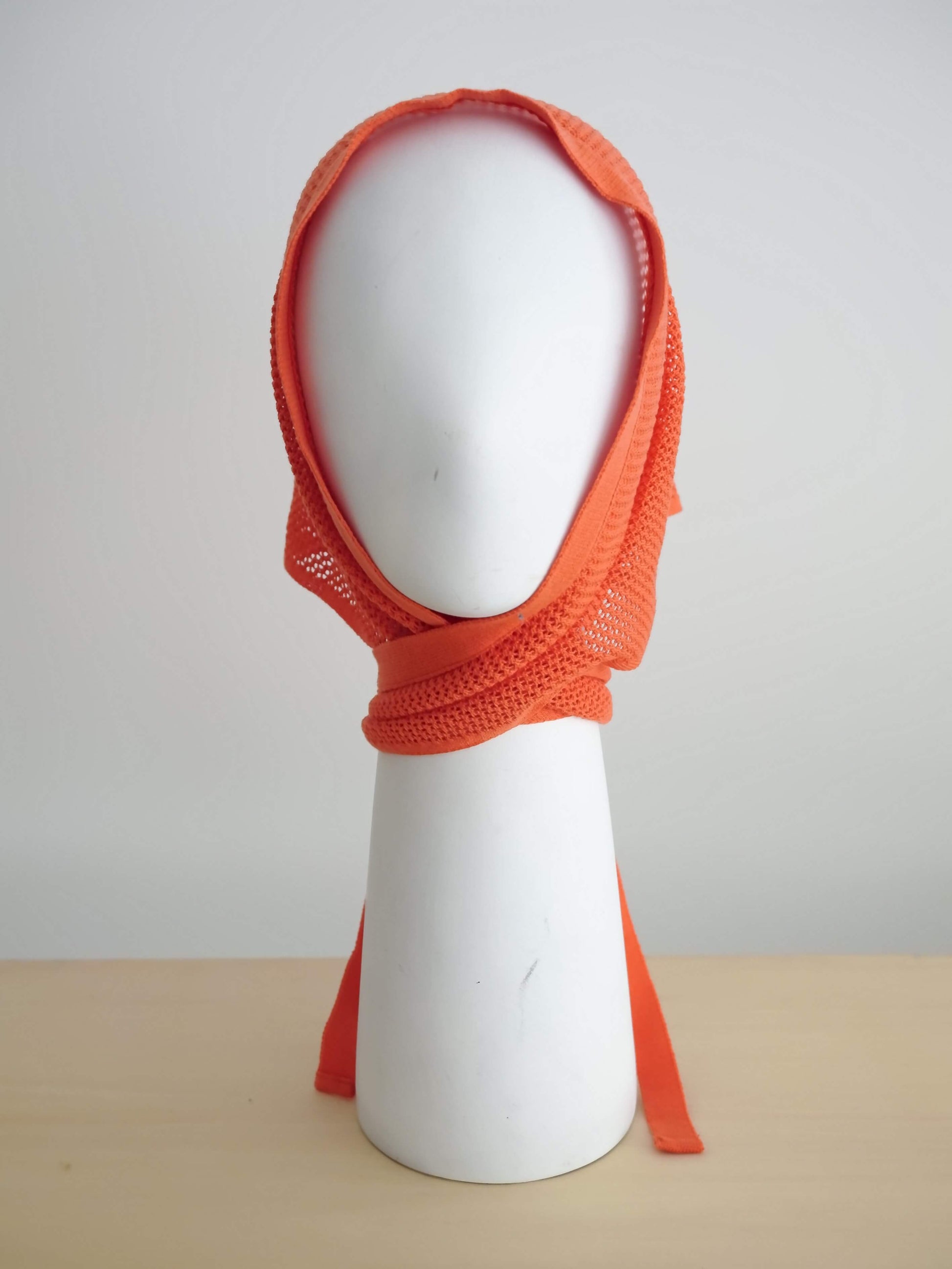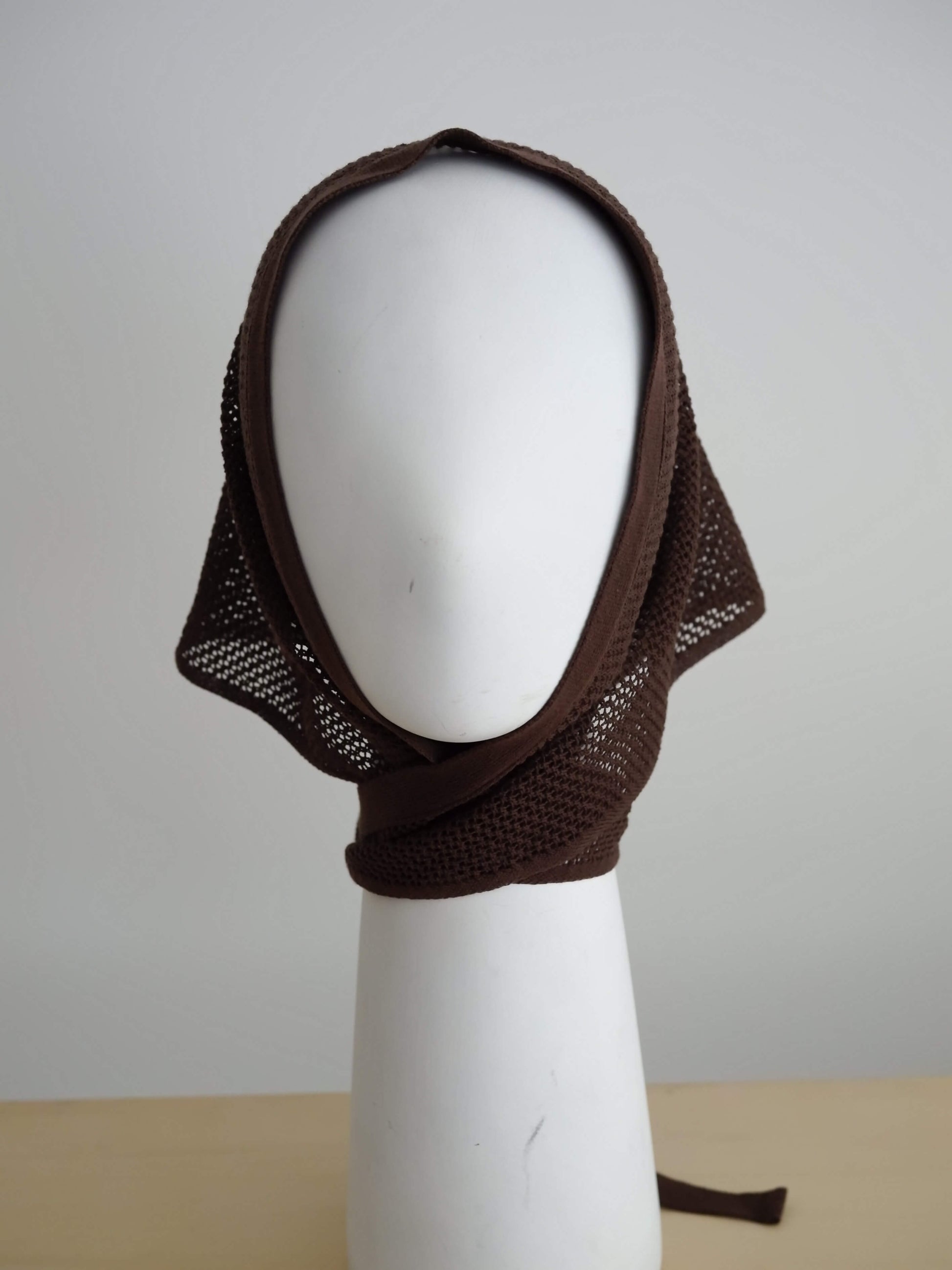 A light and airy head accessory featuring a triangle-shaped scarf adorned with a ribbon.
