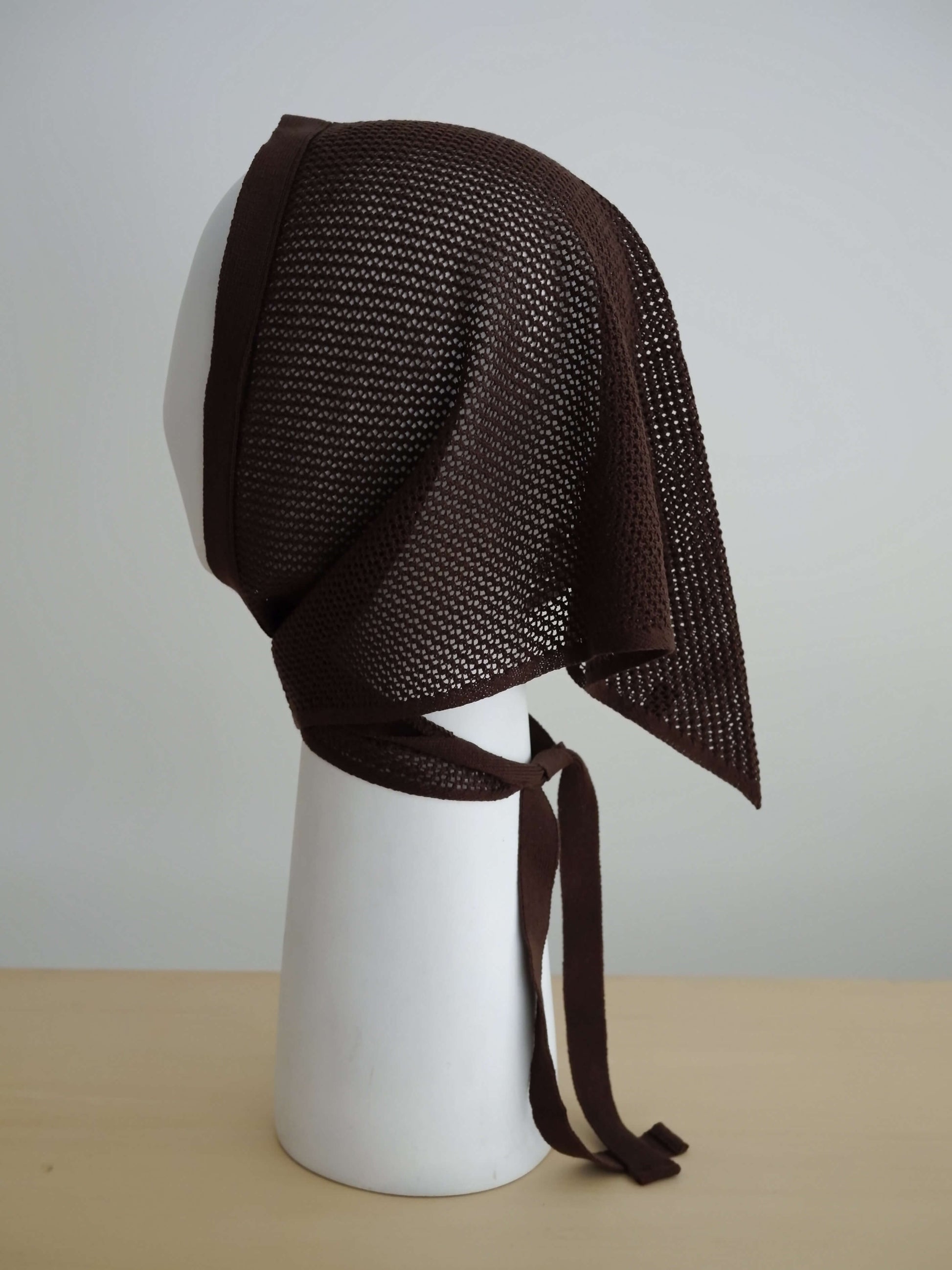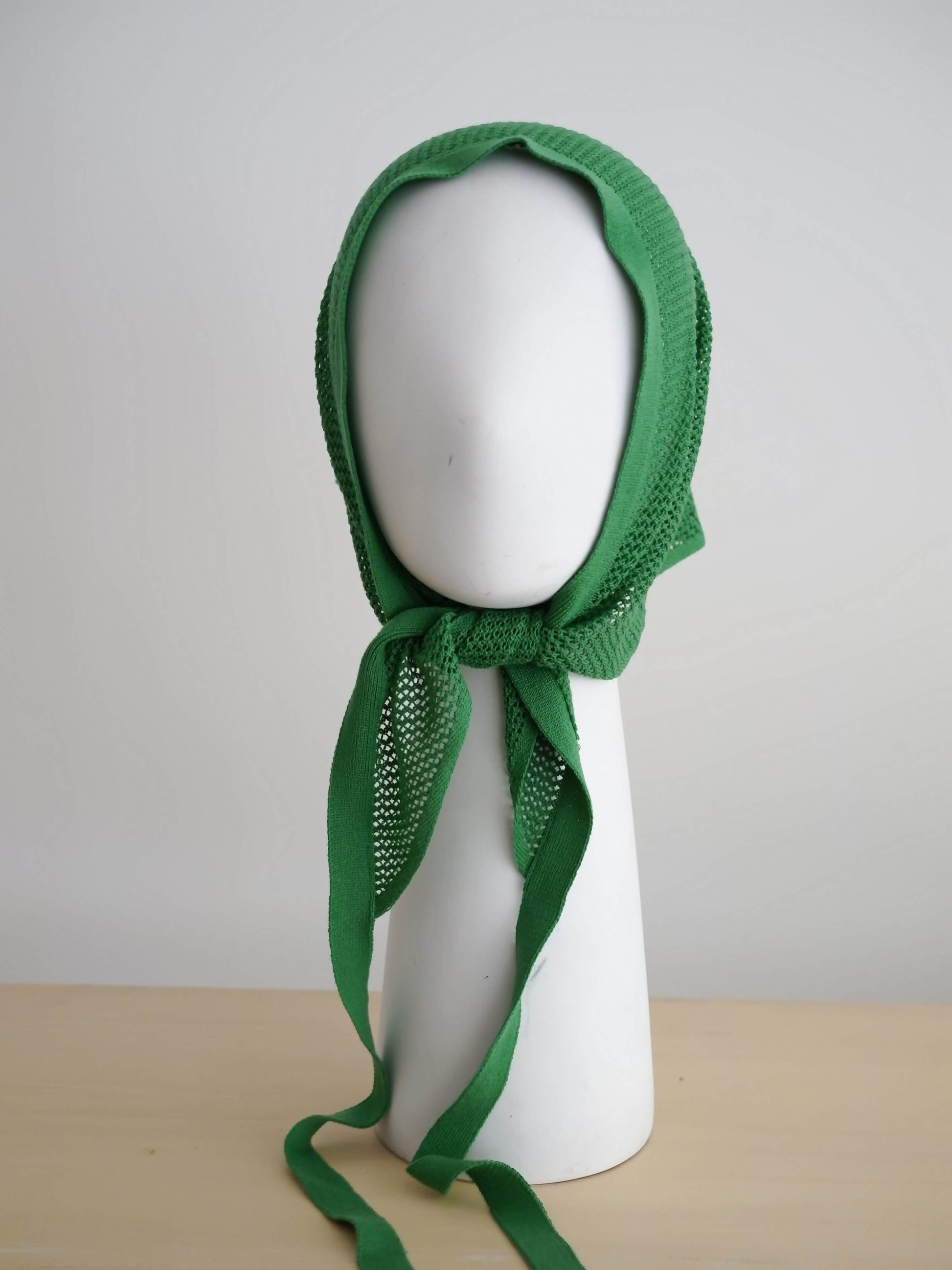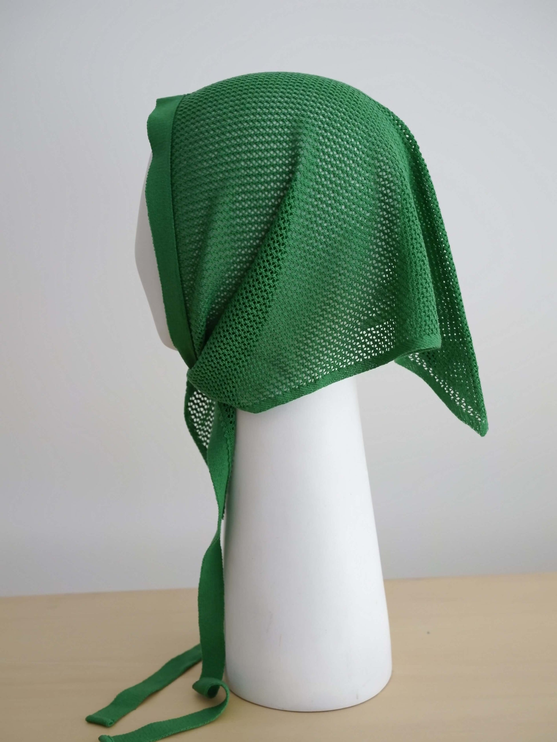 三角スカーフにリボンをあしらった、軽やかなヘッドアクセサリー。