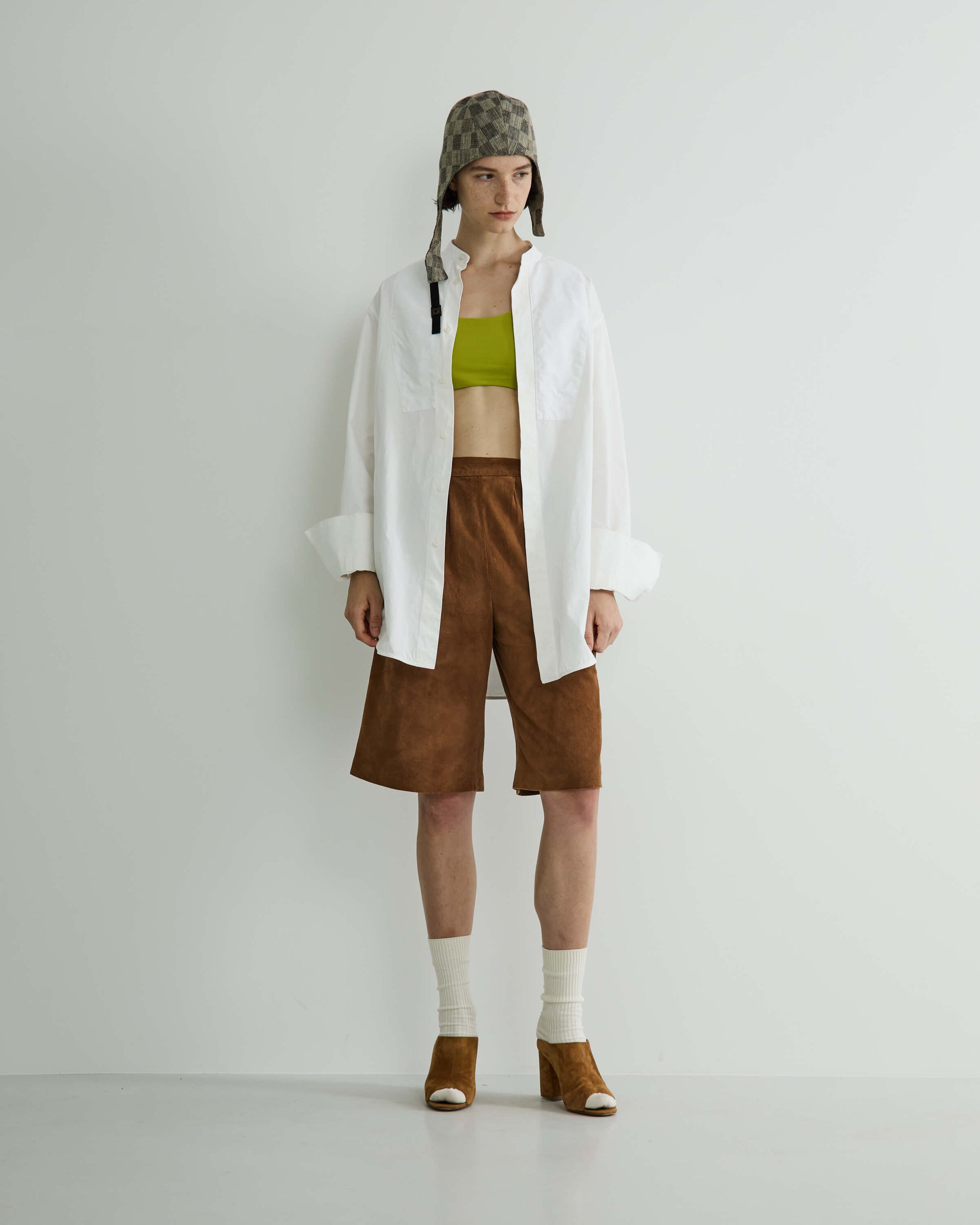 Available in two special fabrics: deadstock Russell fabric and Italian linen check. Both are lightweight and comfortable to wear even in summer.