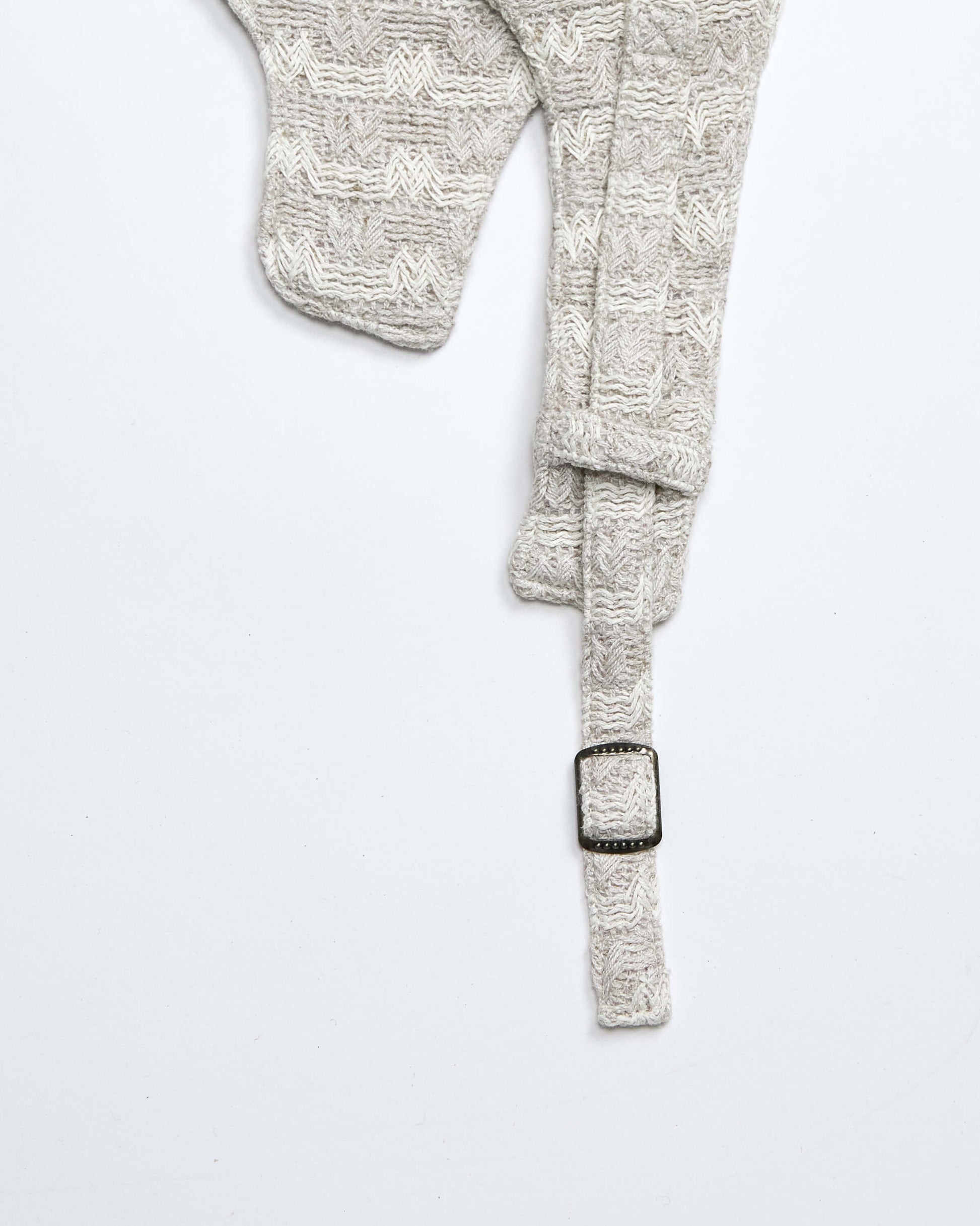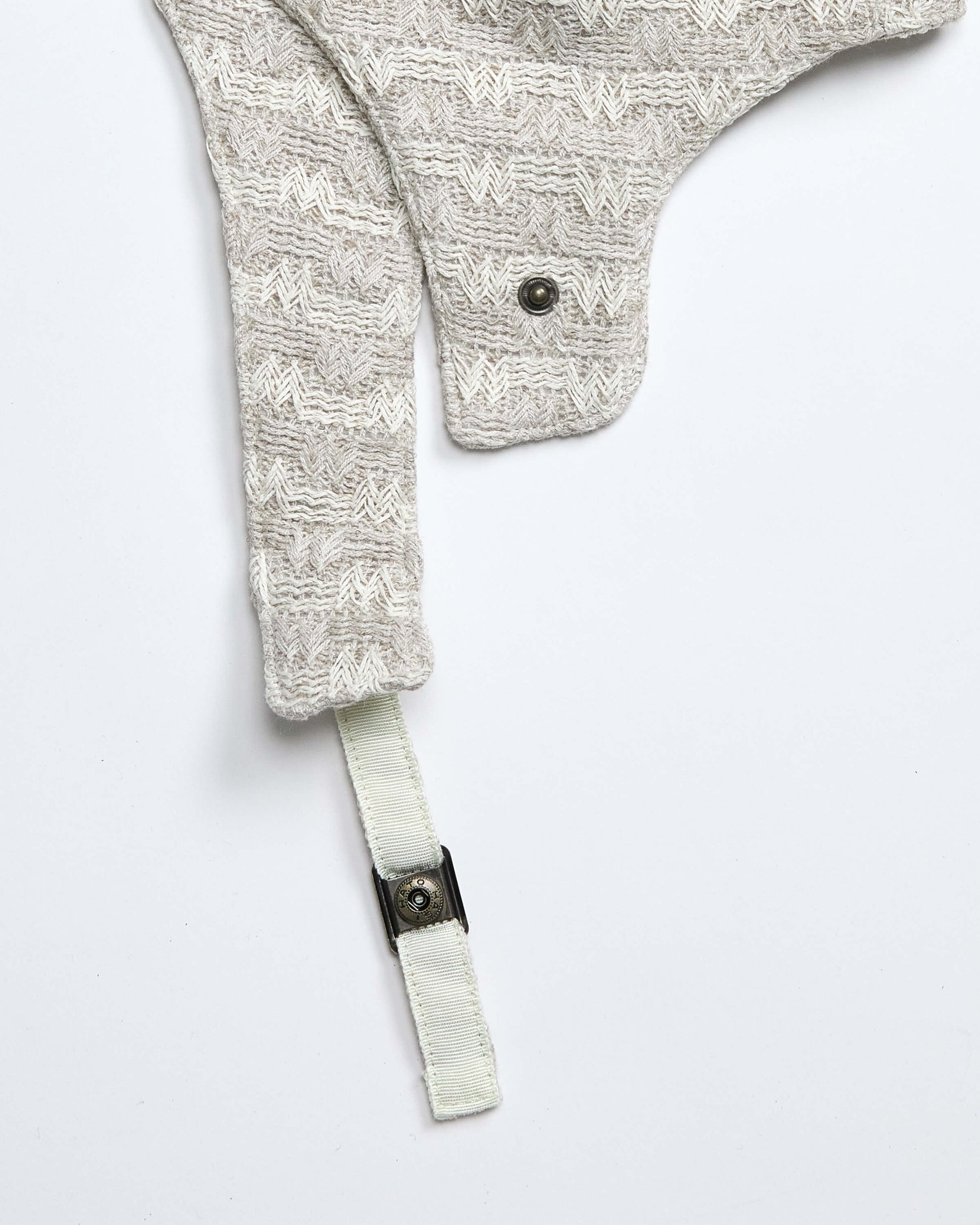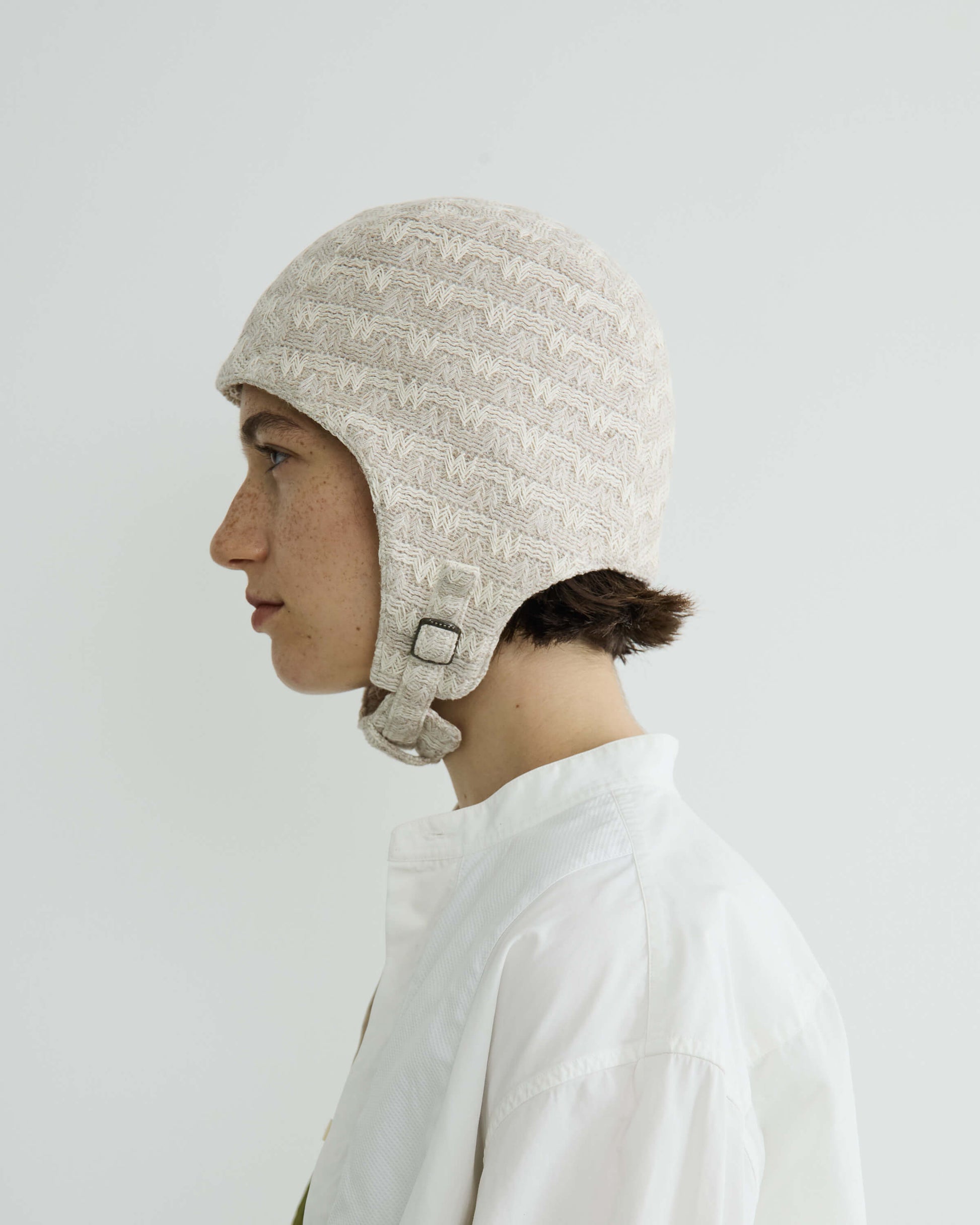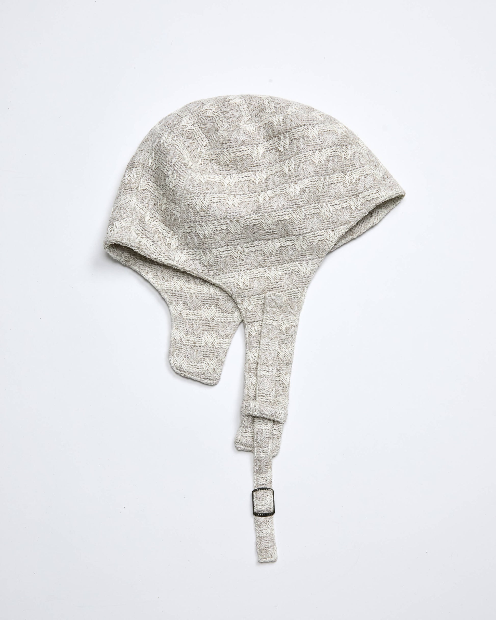 風を避け、ヘアスタイルと合わせてアクセサリーとしても楽しめるフード。デザインソースは中央アジアの遊牧民から。